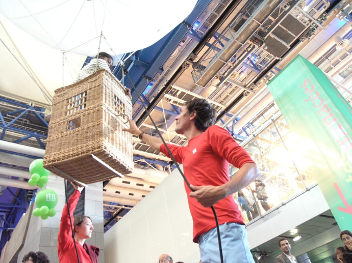 L'enfant est acteur de son vol. C'est lui qui déclenche son ascension en relâchant du poids. Le ballon est retenu par un câble et nos moniteurs modulent la hauteur en fonction des souhaits de l'enfant.